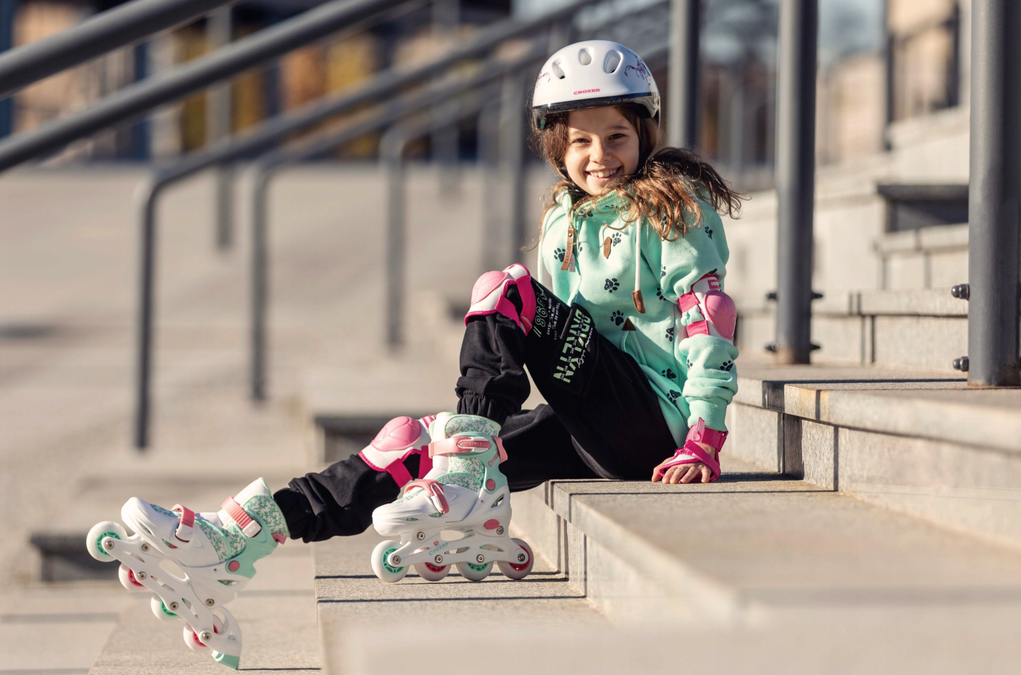 Nastavitelné kolečkové brusle Croxer se svítícími kolečky.